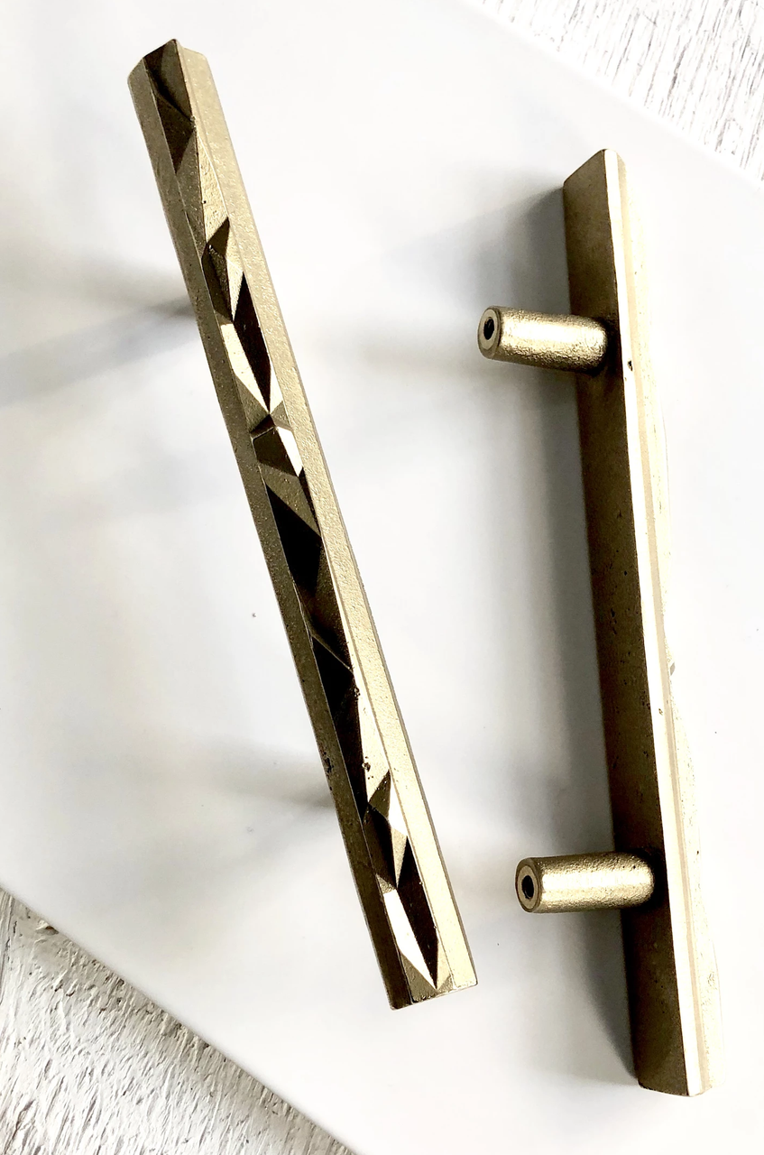 NIKA series 7" handle in solid sand cast 'bright bronze'. These pieces measure 7" long, (approx 178 mm) with a projection of 1.5" (38mm) and have a bolt threads for #8-32 cabinet bolts, 4" apart (4" centres).