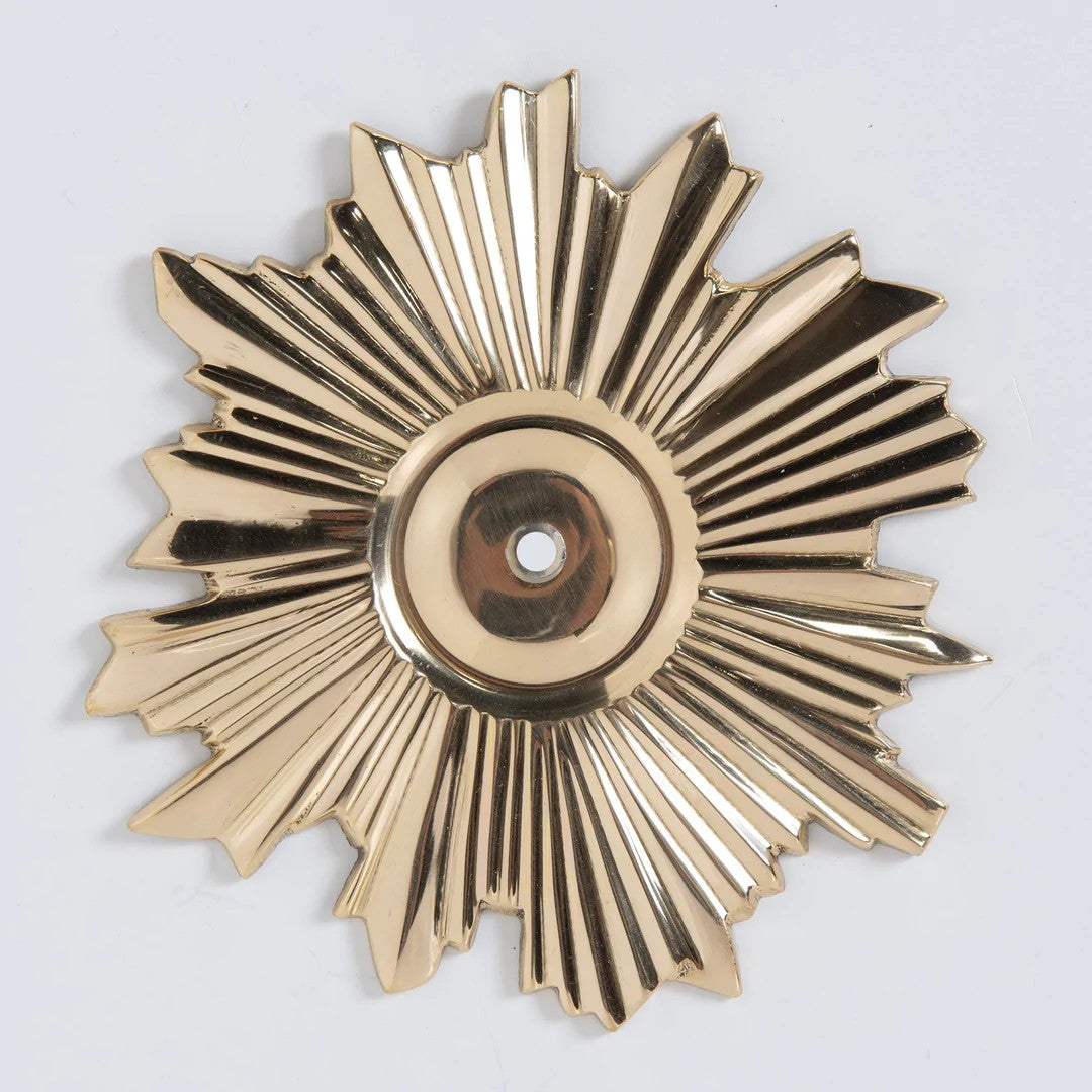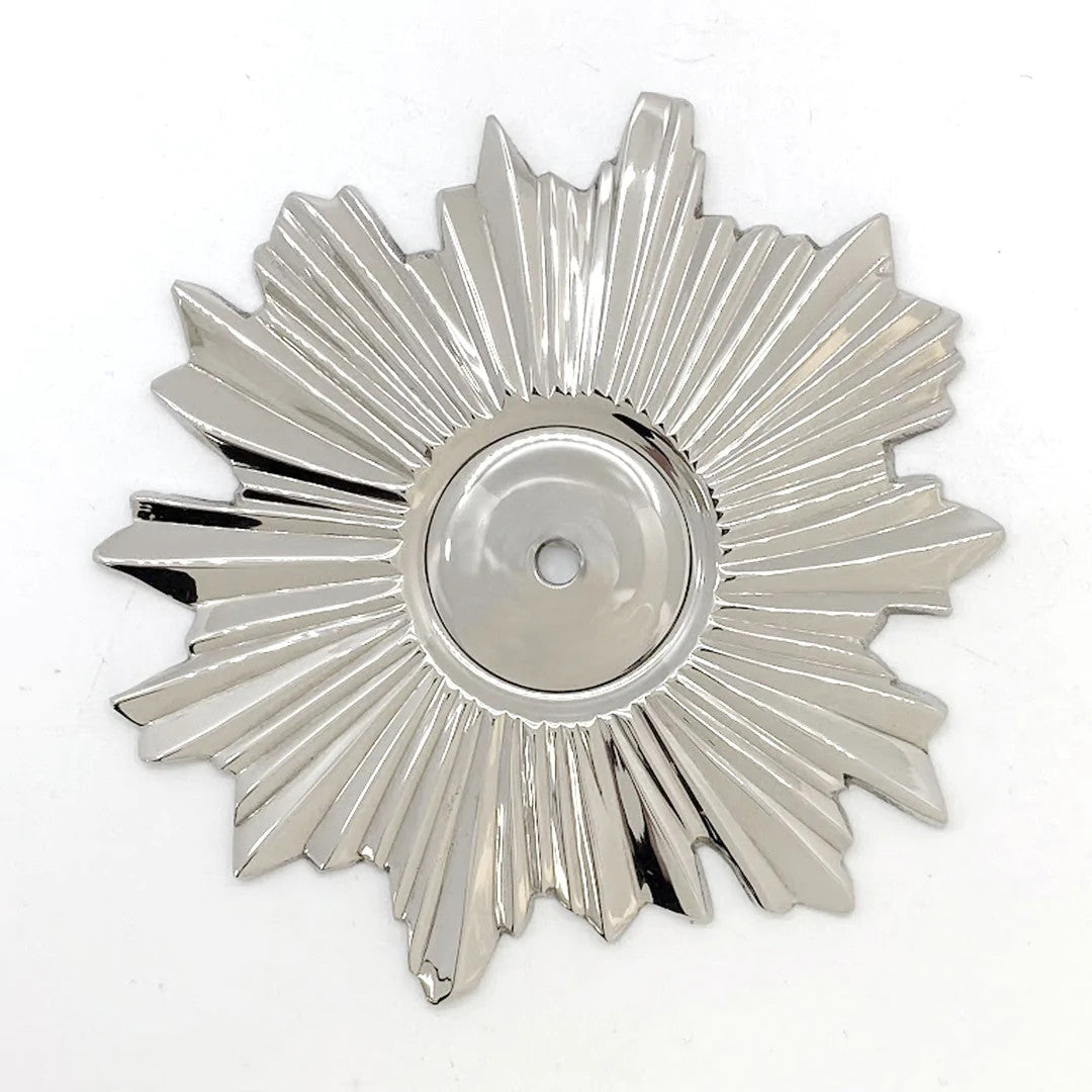 This mesmerizing backplate features a stunning starburst design that emanates from its center. Working well in meticulous modern spaces, this backplate is an ideal companion to a knob in a statement bar or a living room.